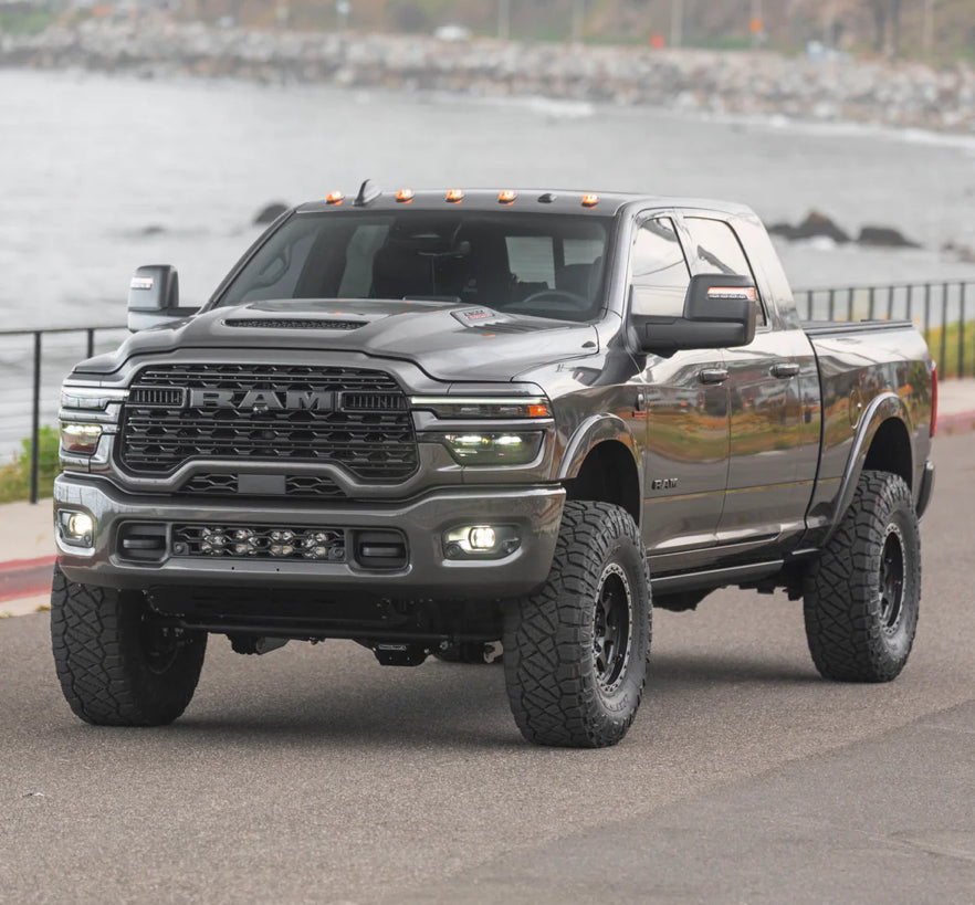 This kit is designed to run upgraded Baja Designs Squadron LED lights on 2025+ Ram 2500 and 3500 trucks. This kit works on Power Wagon Ram 2500 trucks as well. Whether your truck came with or without fog lights from the factory, we have a kit for you!