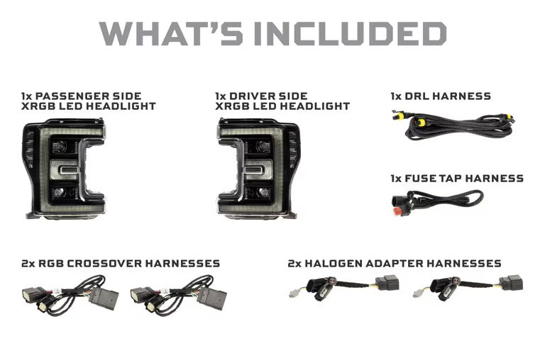 Headlights : One Pair 17-19 Ford Super Duty XRGB (1x Right Hand / Passenger Side Headlight, 1x Left Hand / Driver Side Headlight)
