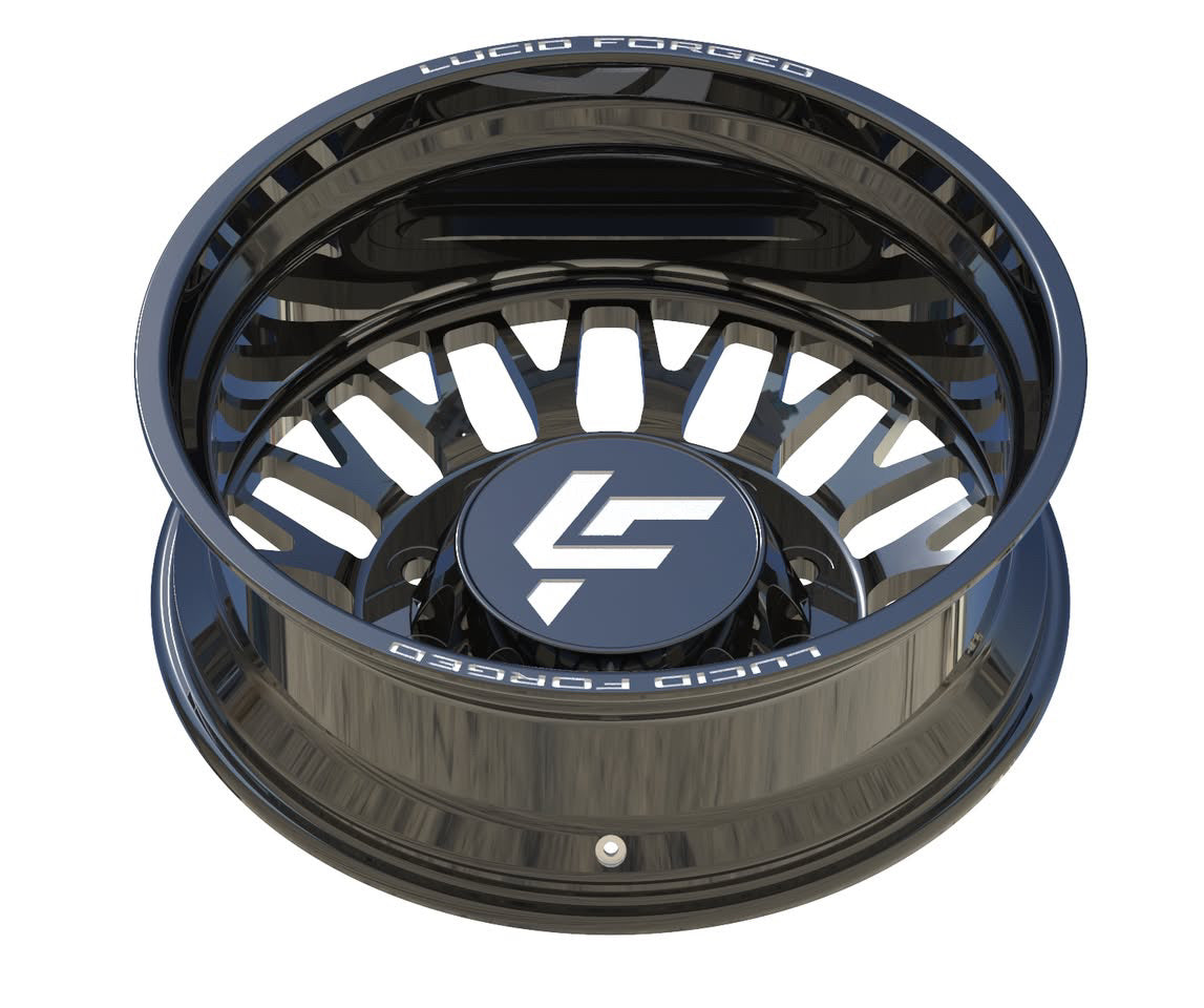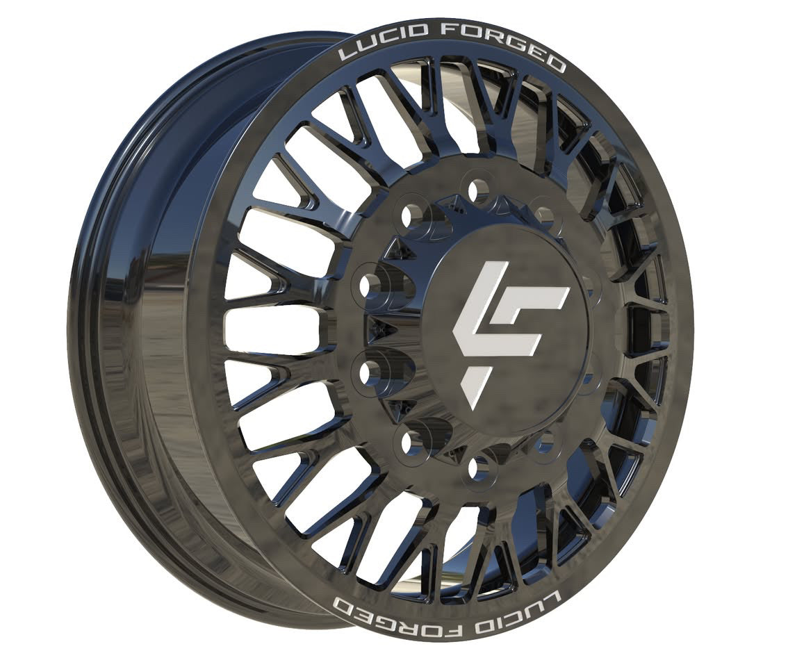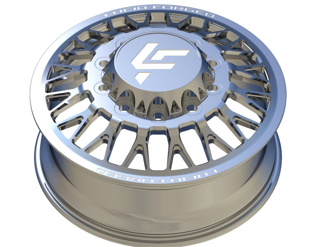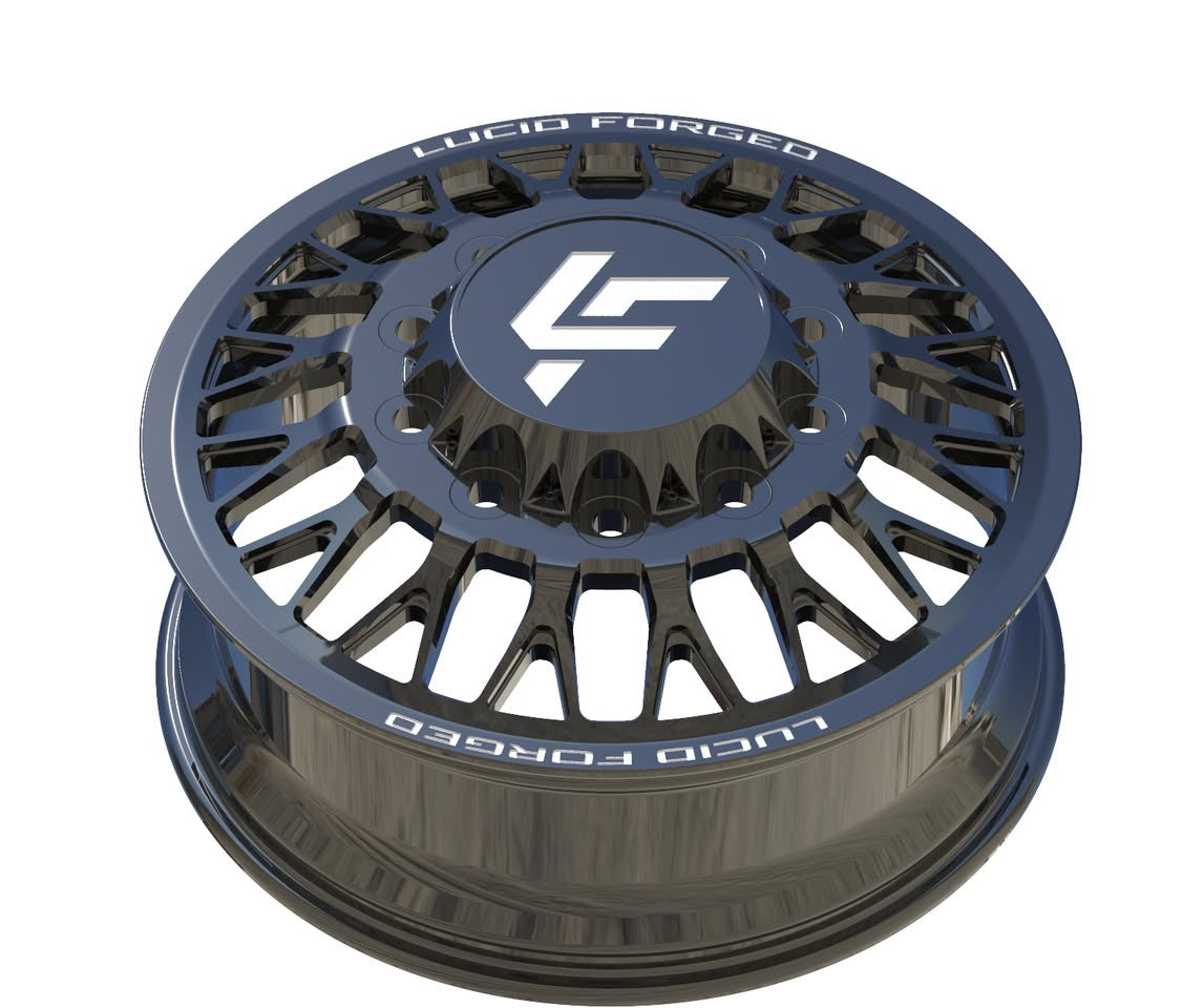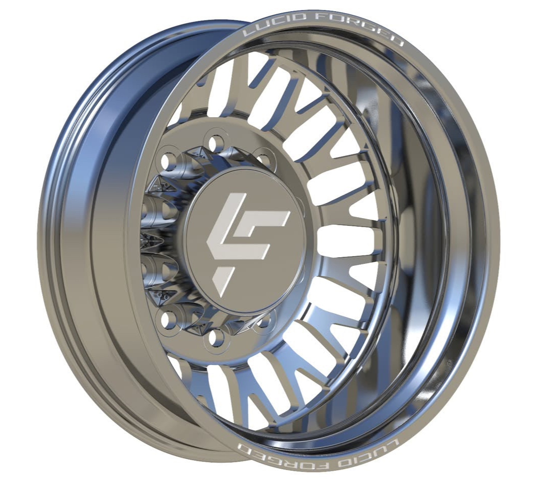 Available with smooth lips or riveted, with Lucid Forged on top and bottom. Wheel width, unless super dually, is 8.25". Super dually sizing is listed as front wheel size/rear wheel size.