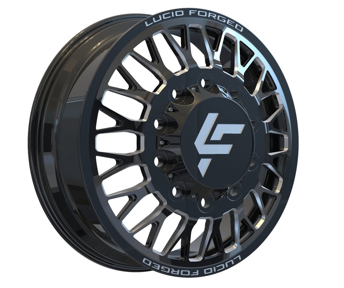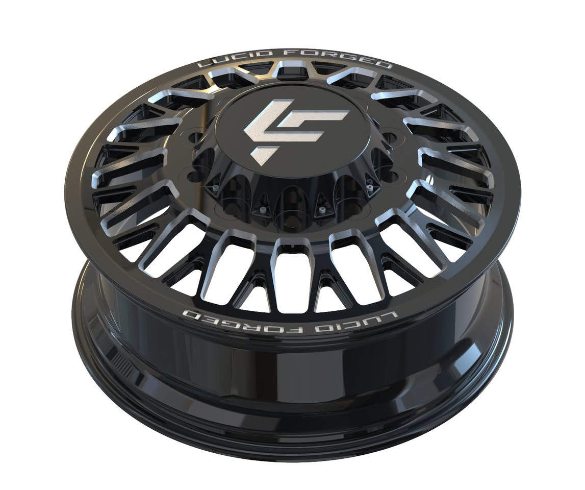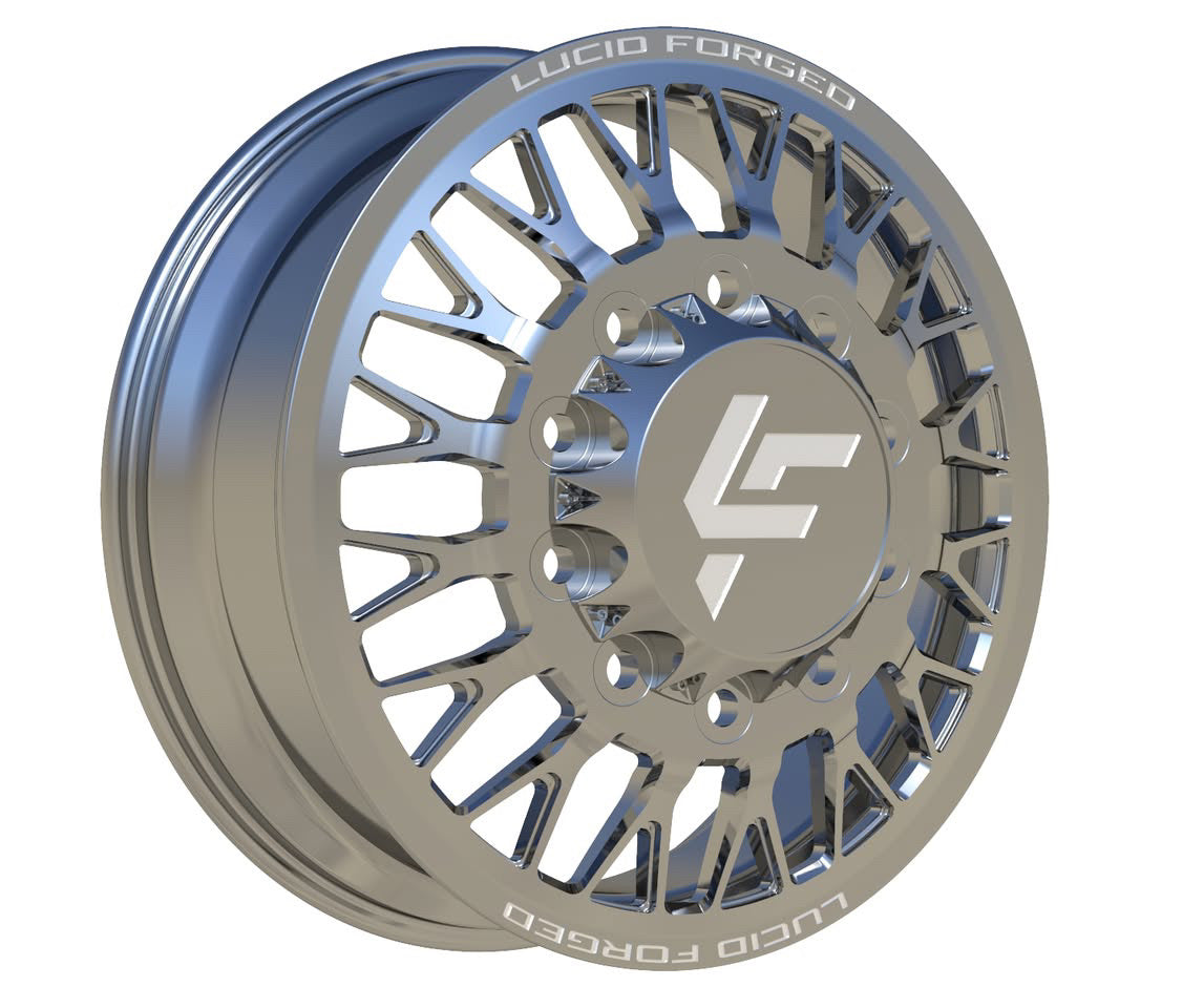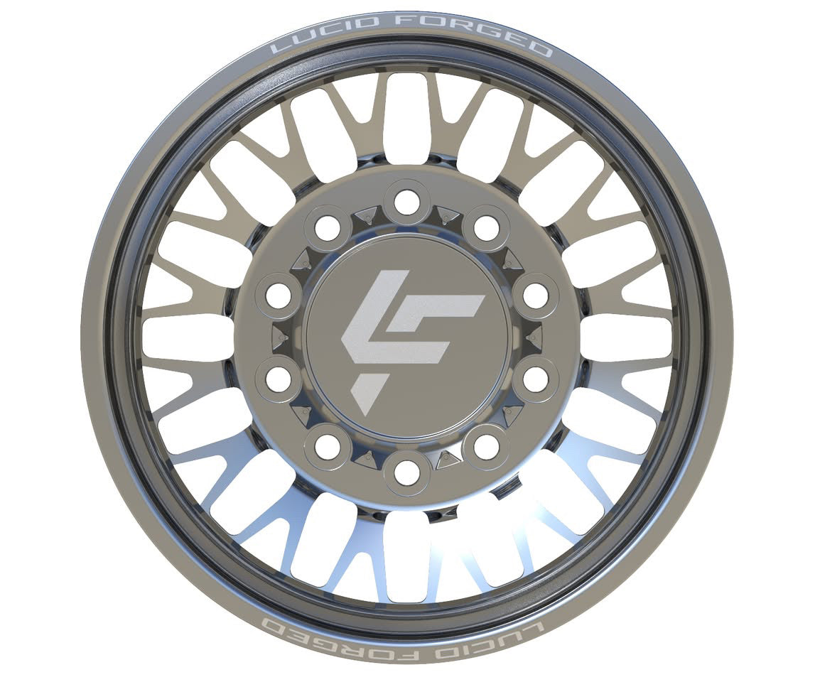Available with smooth lips or riveted, with Lucid Forged on top and bottom. Wheel width, unless super dually, is 8.25". Super dually sizing is listed as front wheel size/rear wheel size.