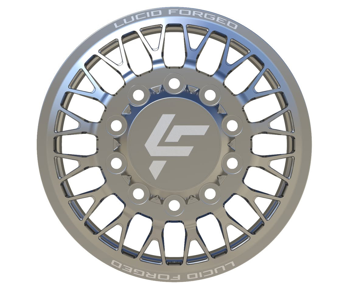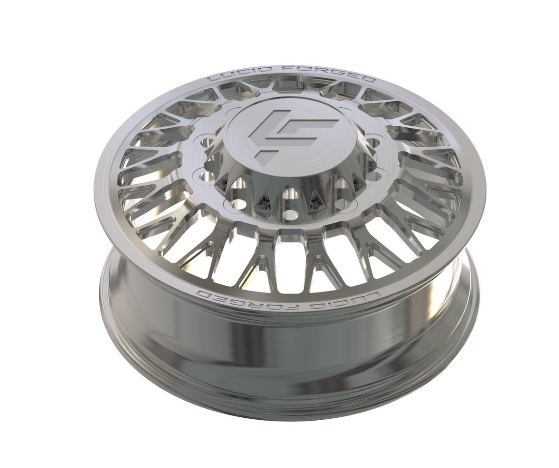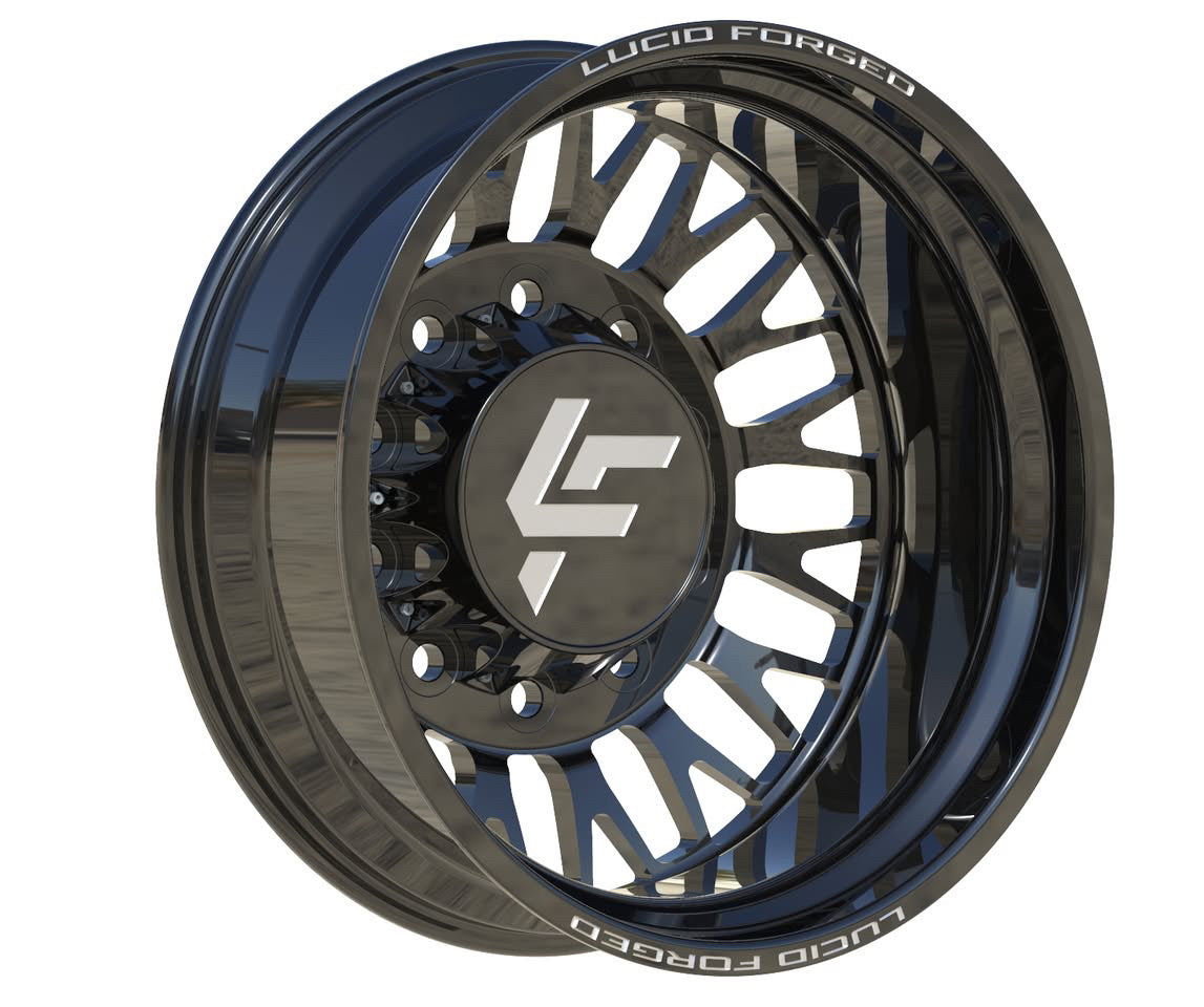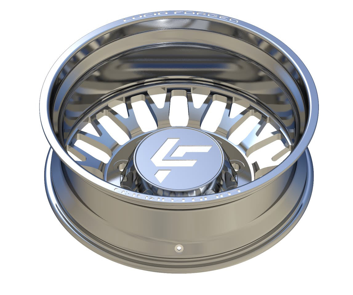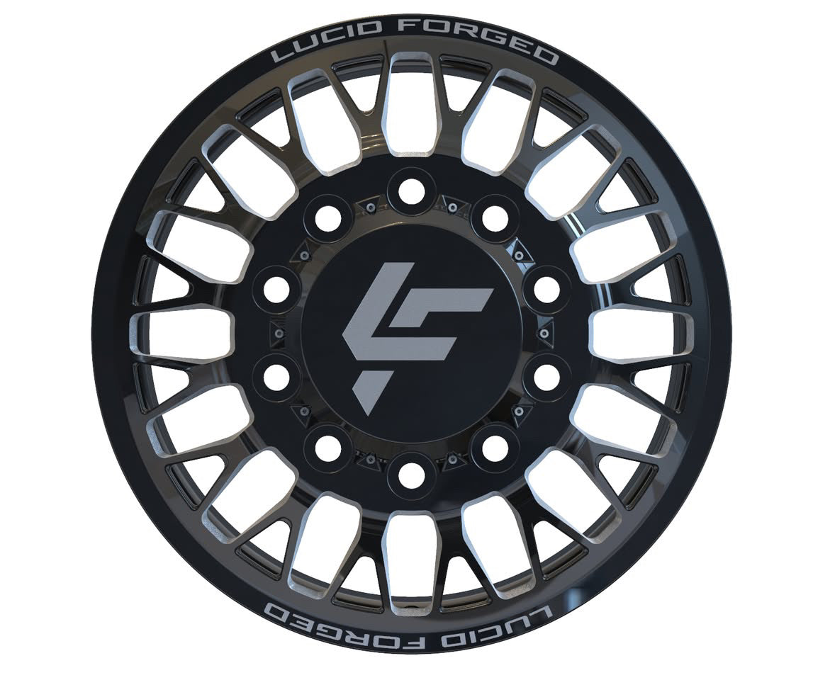 Available with smooth lips or riveted, with Lucid Forged on top and bottom. Wheel width, unless super dually, is 8.25". Super dually sizing is listed as front wheel size/rear wheel size.