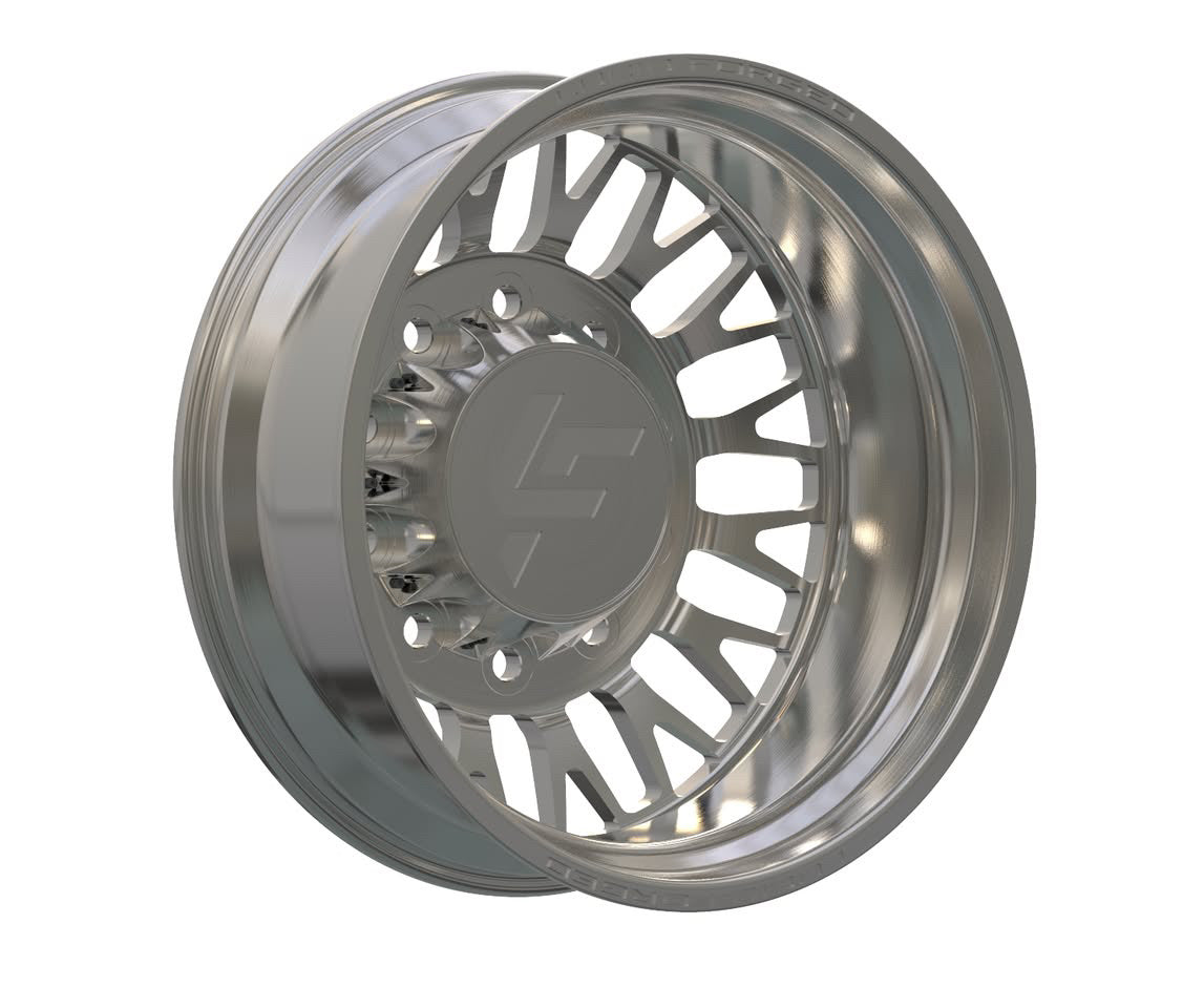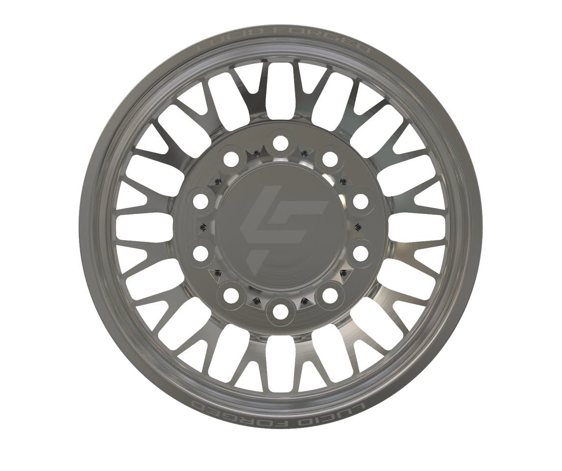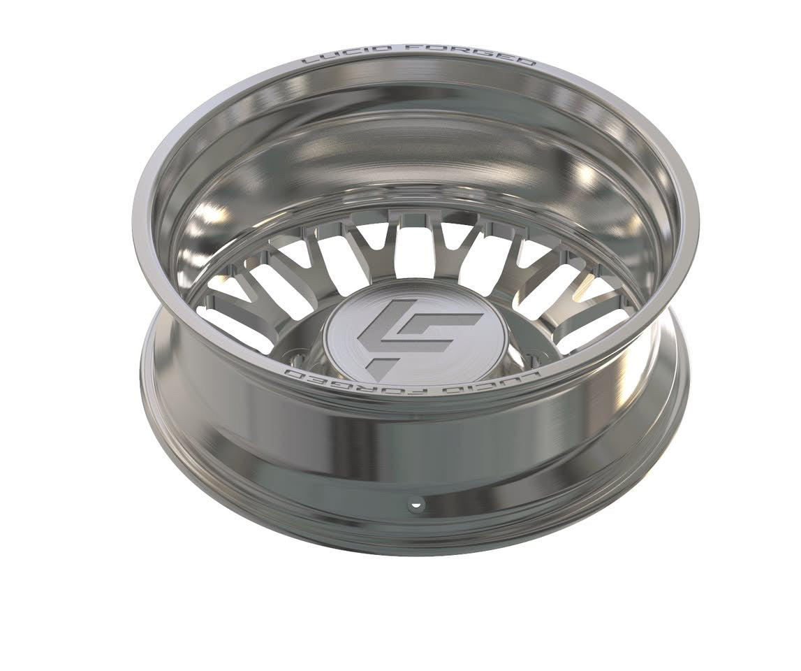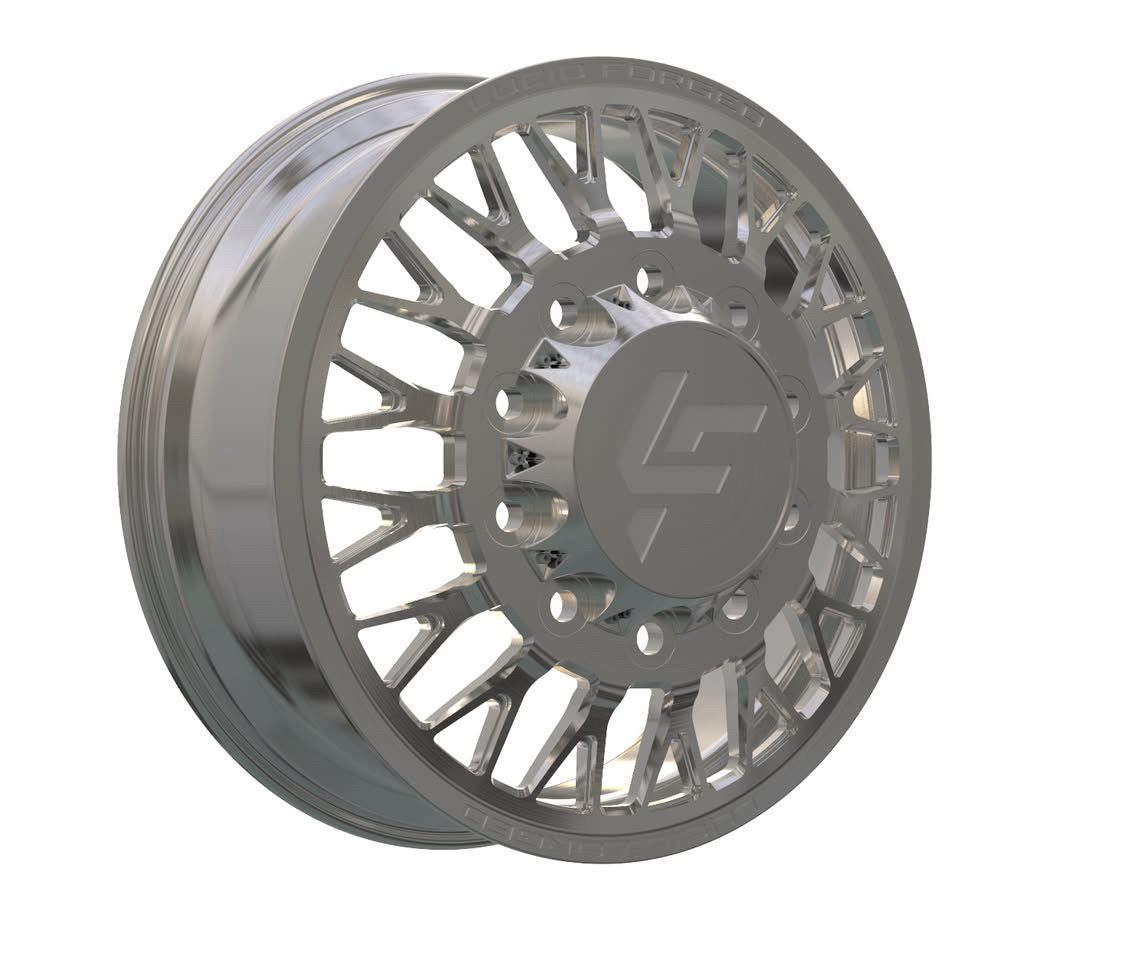 Available with smooth lips or riveted, with Lucid Forged on top and bottom. Wheel width, unless super dually, is 8.25". Super dually sizing is listed as front wheel size/rear wheel size.